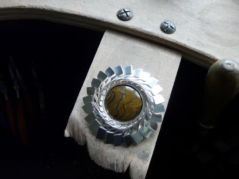 Silver Folded Brooch with Tiger’s Eye